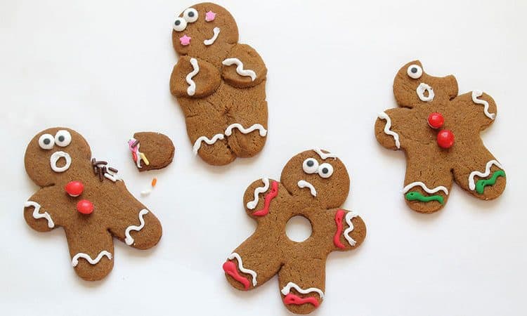 قدمي بسكويت جنجر مان في الكريسماس مع الشوكولاتة