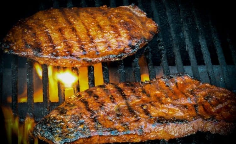 • ¼ كوب صلصة الصويا • 3 ملعقة كبيرة عصير ليمون • 3 ملعقة كبيرة زيت نباتى • 1 ملعقة كبيرة سكر • 1 ملعقة صغيرة كمون • 2/1 1 ملعقة صغيرة من مسحوق الفلفل الأحمر الحار • 3 فص ثوم مفروم ناعم • 1 كيلو ستيك لحم بقرىطريقة التحضير :
