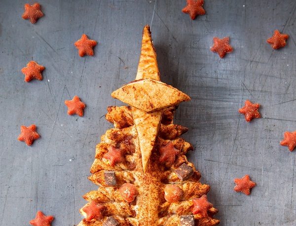 ضعى مثلثين من عجينة الباف باسترى بجانب الشجرة ( إذا