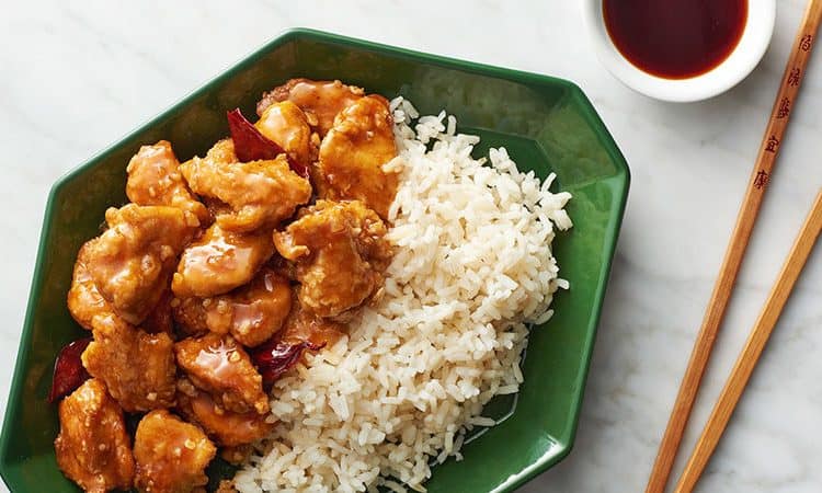 للدجاج: • 2 صدر دجاج منزوع الجلد والعظم، مقطع قطع صغيرة (حوالي 225 جرام) • 1 كوب نشا الذرة ممزوج مع 1 ملعقة صغيرة ملح • 2 فص ثوم كبير الحجم ومفروم • 6 حبة فلفل أحمر صغير، مجفف ومفروم • 1 ملعقة كبيرة زيت فول سوداني • زيت للقلي لتتبيلة الدجاج: • 2 بياض بيض • 1 ملعقة كبيرة صوص الصويا • 1 ملعقة كبيرة كاتشب • ملح وفلفل أسود للصلصة: • 2/1 كوب مرق الدجاج • 3 ملعقة كبيرة صوص الصويا • 1 ملعقة كبيرة خل • 2 ملعقة صغيرة زيت السمسم • 3 ملعقة كبيرة سكر • 2 ملعقة صغيرة نشا الذرة • 2 ملعقة كبيرة كاتشبطريقة التحضير :