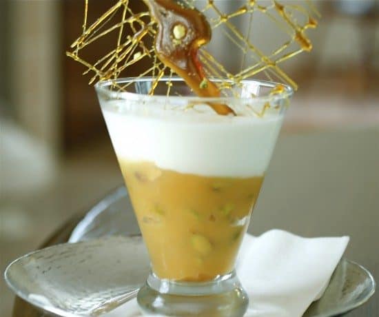 مهلبية المشمش ( المشمشية أو المشمش المجفف ) بالفستق الحلبى مع الحليب ويتم