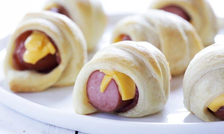 • 5 قطع هوت دوج • 8 شريحة لحم مقدد مطبوخ • 4 شريحة جبن شيدر • عجينة الكرواسونطريقة التحضير :