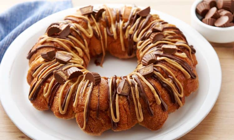 • 450 جرام عجينة الكرواسون<br /> • 36 حبة شوكولاتة بحشوة زبدة الفول سوداني<br /> • 4/1 كوب سكر<br /> • 4/1 كوب زبدة<br /> للتوبينغ:<br /> • 4/1 كوب رقائق الشوكولاتة نصف حلوة<br /> • 2 ملعقة كبيرة زبد فول سوداني<br /> • 8 قطع شوكولاتة بحشوة زبدة الفول سوداني مفرومةطريقة التحضير :