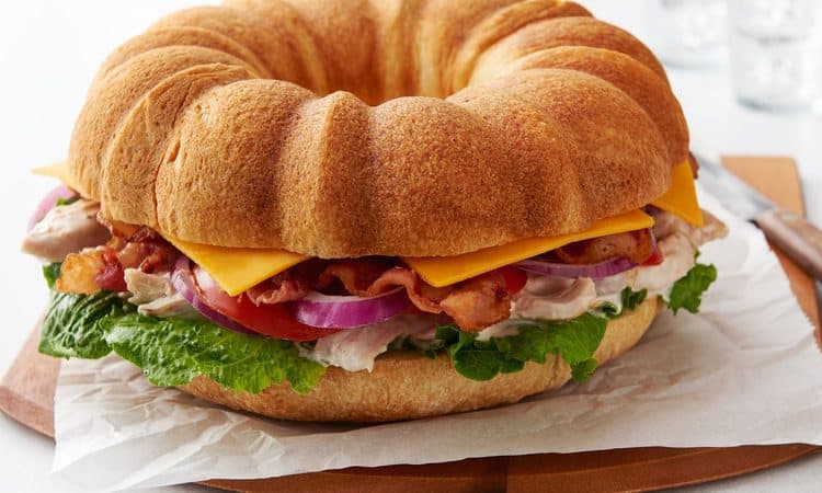 .قطعي كيك الساندويش دجاج بالرانش إلى حلقات وقدميها فوراً، جربي أيضاً ساندويتش مونت كريستو الإيطالي.