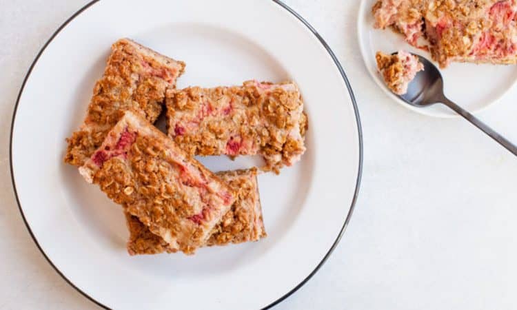 لطبقة الشوفان: • 2/1 1 كوب شوفان • 1 كوب طحين القمح الكامل • 2/1 ملعقة صغيرة بكينج صودا • 2/1 ملعقة صغيرة ملح • 2/1 ملعقة صغيرة قرفة • 2/1 كوب سكر بني • 1 حبة بيض • 2/1 كوب زبدة مذابة • 4/1 كوب حليب لطبقة الزبادي: • 1 كوب فراولة • 4/3 كوب زبادي يوناني • 1 حبة بيض • 2 ملعقة كبيرة طحين القمح الكاملطريقة التحضير :