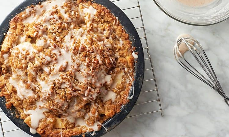لعجينة السينابون: • 1 كوب ماء فاتر • 2/1 ملعقة كبيرة خميرة فورية • 1 ملعقة صغيرة ملح • 2 بيضة مخفوقة قليلاً • 4/1 كوب عسل • 4/1 كوب زبدة غير مملحة مذابة • 4/3 3 كوب طحين لحشوة عجينة السينابون: • 2 ملعقة صغيرة قرفة مطحونة • 1 ملعقة كبيرة زبدة • 1 حبة بيض مخفوقة مع 1 ملعقة صغيرة ماء لطبقة التفاح: • 1 كوب سكر بني فاتح • 1 كوب طحين • 8 ملعقة كبيرة زبدة في درجة حرارة الغرفة • 7 – 8 كوب تفاح، مقشر ومقطع شرائح صغيرة لصوص السكر: • 2 ملعقة صغيرة حليب • 4/1 ملعقة صغيرة قرفة • 4/1 ملعقة صغيرة فانيليا • 2/1 كوب مسحوق السكرطريقة التحضير :