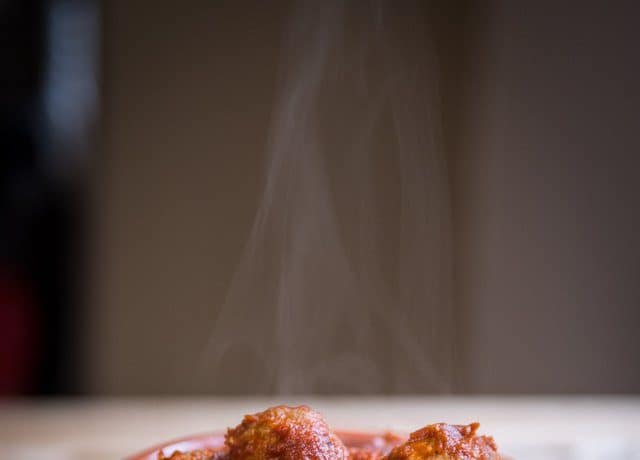 نار متوسطة الحرارة وأضيفي كرات اللحم، قلبي اللحم حتى يتغير لونه.