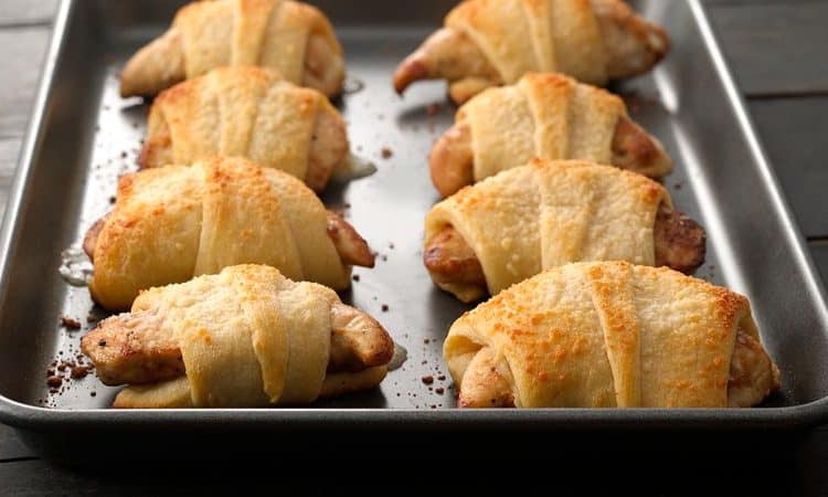 رشي كرواسون الدجاج في صينية خبز مدهونة بقليل من الزيت