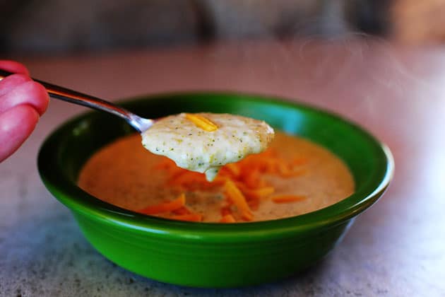 أضيفي القليل من شوربة البروكلى بالجبن داخل