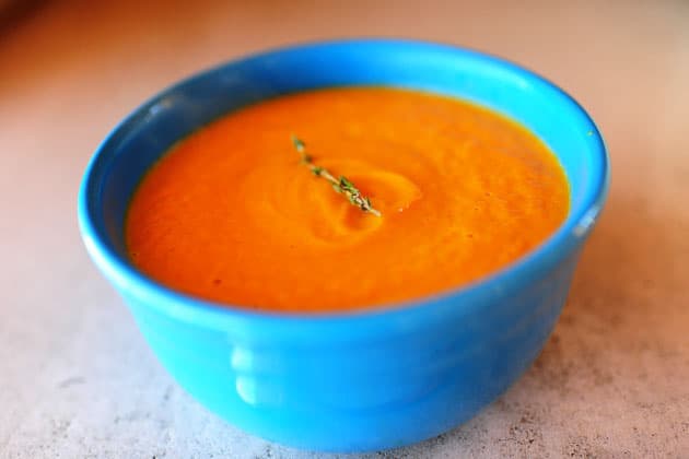 • كيلو جزر صغير • 2 لتر مرق دجاج أو خضار • 2 غصن زعتر طازج • 1/3 كوب عسل • 1/2 كوب كريمة طبخ • رشة ملحطريقة التحضير :