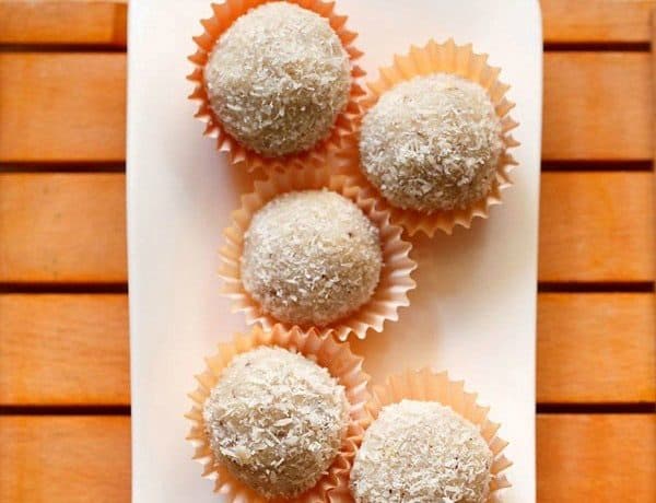 ضعي كرات جوز الهند في أوراق الكب كيك الصغيرة ثم قدميهم علي الفور أو