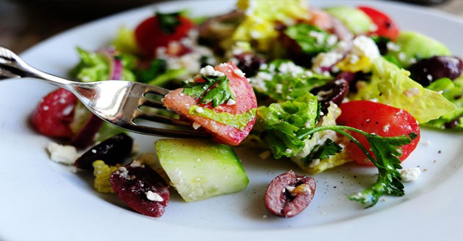 قدمى السلطة اليونانية في طبق جميل وأضيفي