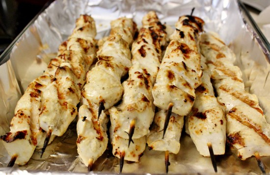 . ملحوظة : بإمكانك وضع قطع الفلفل الحلو والبصل والمشروم والطماطم في الأعواد الخشبية حسب الرغبة ، أيضا احذري ترك قطع الدجاج في الأعواد الخشبية مدة طويلة حتى لا تتسرب المياه إلى الخشب فتحترق بسرعة .