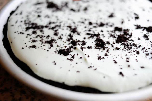 بعد ذلك زينى الفطيرة بفتات الأوريو أو بالشيكولاته المبشورة ثم
