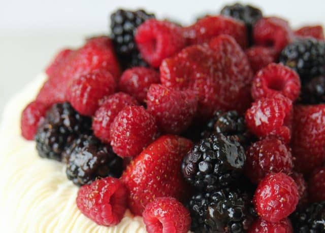 - كعكة مستديرة عالية الطبقة - كريمة تزيين مجمدة - قمع التزيين بشكل النجمة المفتوحة . - فواكه برية . - مربي فواكه برية (مربي توت بري)طريقة التحضير :