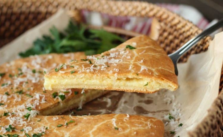 لعمل العجين : • 4/3 1 كوب طحين • ملعقة صغيرة بكينج بودر ( مسحوق الخبز ) • 2/1 ملعقة صغيرة ملح • ملعقة صغيرة سكر • 225 جرام ( 2/1 1 كوب ) جبن ريكوتا • 8 ملاعق كبيرة زبدة ( في درجة حرارة الغرفة ) • بيضة لعمل حشوة الجبن : • 168 جرام مزيج الجبن المبشور ( شيدر ، فلامنك ، موزاريلا ) • 4/1 كوب من مبشور جبن البارميزان • بيضة • ملعقة كبيرة من الكريمة الحامضة ( ساور كريم ) • فص ثوم مفروم للتزين : • بيضة • ملعقة كبيرة ماء • مبشور جبن البارميزان • بقدونس طازج مفروم