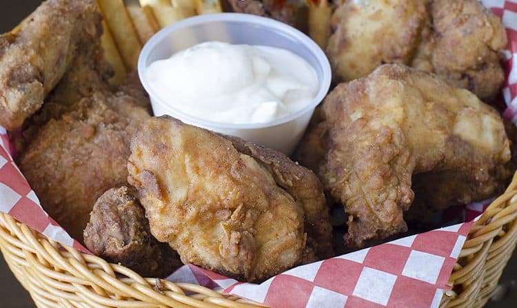 لتتبيلة الدجاج :<br /> • 1.36 كجم دجاجة كاملة<br /> • 2 كوب لبن رائب<br /> • 2 ملعقة كبيرة مسحوق مرق الدجاج<br /> • 1 ملعقة صغيرة فلفل أسود مطحون <br /> • 2 ملعقة صغيرة معجون الثوم<br /> لقلي الدجاج :<br /> • 420 جرام طحين لجميع الأغراض<br /> • 3 ملعقة كبيرة مسحوق مرق الدجاج<br /> • 2 ملعقة صغيرة فلفل أسود مطحون<br /> • 2 لتر زيت نباتي للقلي