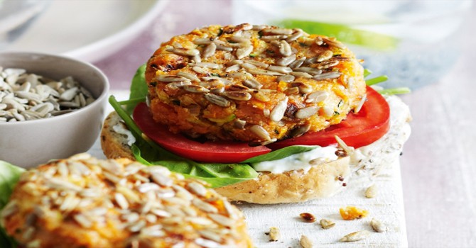 قدمى برجر الدجاج الصحى مع السلطة الخضراء كوجبة صحية متكاملة العناصر
