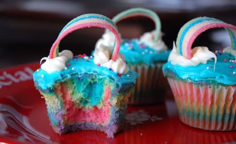 • 1 كوب لبن زبادى • 1 معلقة صغيرة بيكربونات الصوديوم • 3 كوب طحين • 4 معلقة صغيرة بيكنج بودر • 1/2 معلقة صغيرة ملح • 1 كوب ( 200 جرام ) زبدة في درجة حرارة الغرفة • 1 و 3/2 كوب سكر ناعم وليس سكر بودرة • 3 معلقة صغيرة فانيليا • 1 بيضة في درجة حرارة الغرفة • 4 بياض بيض في درجة حرارة الغرفة • 1/4 كوب حليب • ألوان طعام طبيعية بألوان قوس قزح • للتزيين :- • 1 كوب جبن كريمى • 1 كوب كريمة خفق ( كريم شانتيه ) • سكاكر ملونة
