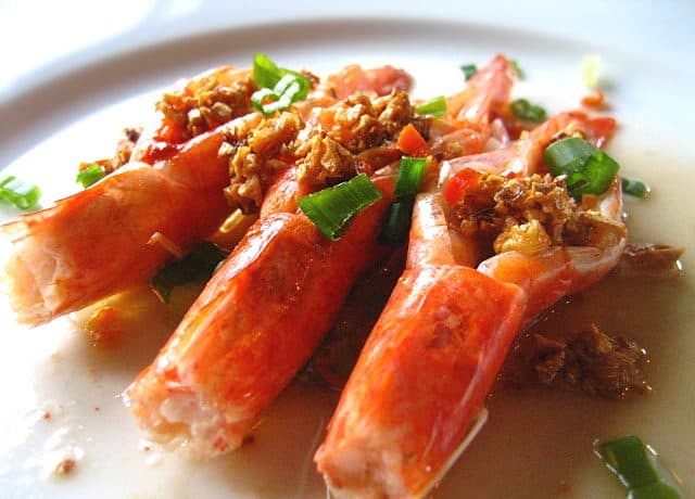 الحبل الترابى فى الظهر ويتبل الجمبرى بالملح والملح الصينى وصلصة الصويا ويترك