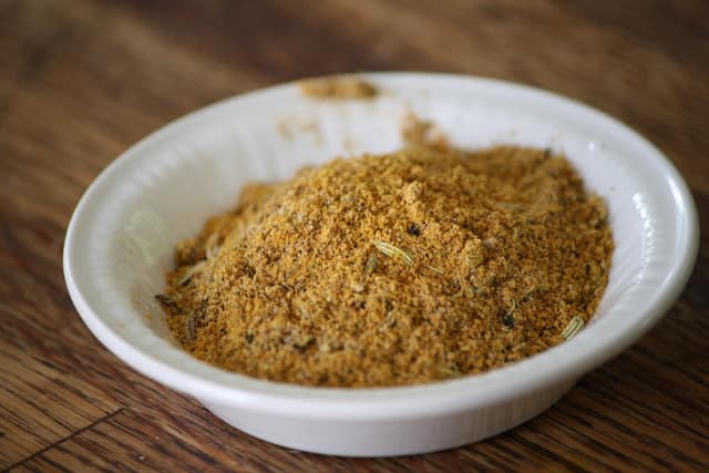 • 1 ملعقة صغيرة كركم • 1 ملعقة صغيرة بذور الكزبرة • 1 ملعقة صغيرة فلفل أسود ( 2/1 ملعقة صغيرة : غير حارة ) • 1 ملعقة صغيرة حبات الهال ( جبهان ) • 1 ملعقة صغيرة زنجبيل • 1 ملعقة صغيرة بذور الشمرطريقة التحضير :