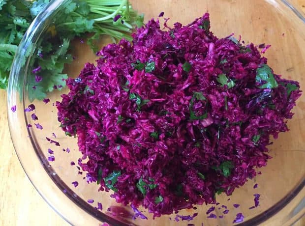 تناولي سلطة الملفوف الأحمر مع ساندويتشات