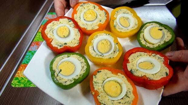 قدمي الفلفل بحشو الجبن والبيض المسلوق كطبق