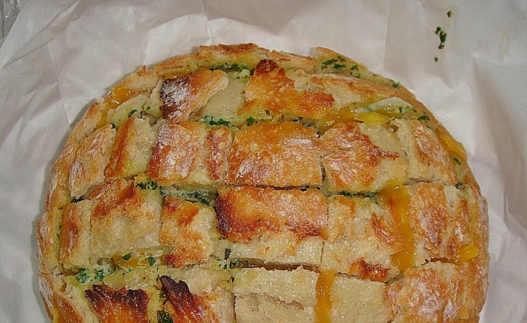 •1 خبز فرنسى محمص •100 جرام زبدة بالأعشاب •200 جرام جبن شيدرطريقة التحضير :