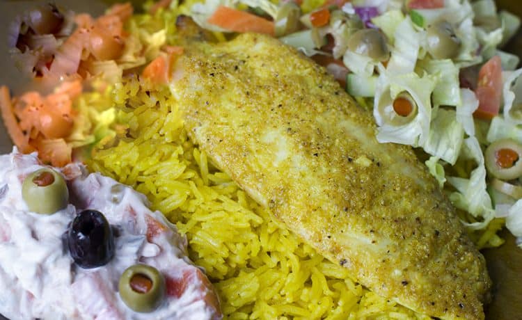 قدمي فيليه السمك البلطي المشوي مع سلطة
