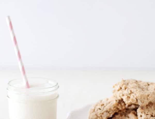 قدمي كوكيز الشوفان ببذور عباد الشمس مع كوب