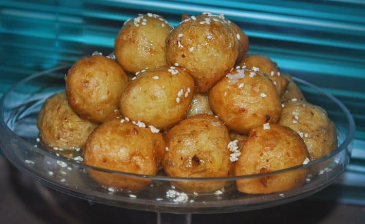 – تقطع العجينة قطع صغيرة وتحمر في زيت غزير .