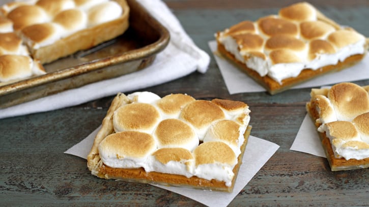 • عجينة البف البستري أو كراست • 4/1 كوب زبدة • 4/1 كوب سكر • 2 ملعقة صغيرة مسحوق اليقطين • 4/1 ملعقة صغيرة ملح • 2 بيض • 421 جرام هريس اليقطين • 337 جرام حليب مبخر • 450 جرام مارشميلو كبير الحجمطريقة التحضير :