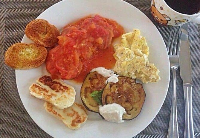 •جبن مالح<br /> •بطيخ <br /> •عسل أسود<br /> •طحينة <br /> •باذنجان <br /> •بيض <br /> •طماطم <br /> •جبن حلوم<br /> •زيت للقلى <br /> •خبزطريقة التحضير :