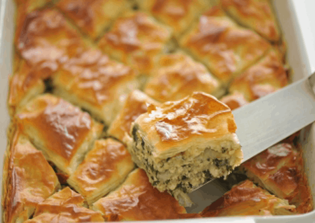 وقليل من الفلفل ثم تخرج الصينية من الفرن وتقطع مربعات ويضاف اليها اللبن المضروب