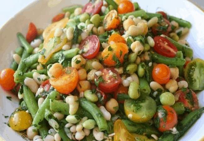 • ½ كيلو طماطم طازجة . • ½ كيلو بطاطا . • ½ كيلو لوبيا . • 10 حبات زيتون اسود . • 1 علبة كبيرة تونة بالزيت . • 4 بيضات . • 1 علبة صغيرة من التين الشوكى . • ¼ كيلو لوبيا بيضاء . مقادير الصلصة : • ½ كوب عصير الليمون . • ¾ كوب زيت زيتون . • ½ ملعقة صغيرة خردل . • رشة ملح .طريقة التحضير :