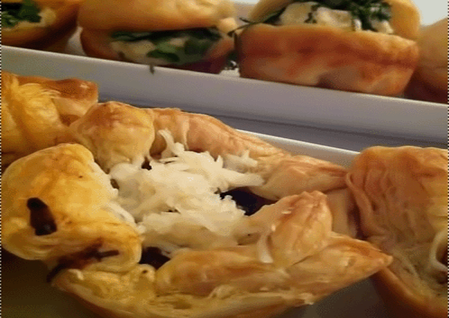 الجبنة ثم يطوى ويمسح أعلى الرقاقات بصفار البيض والحليب .