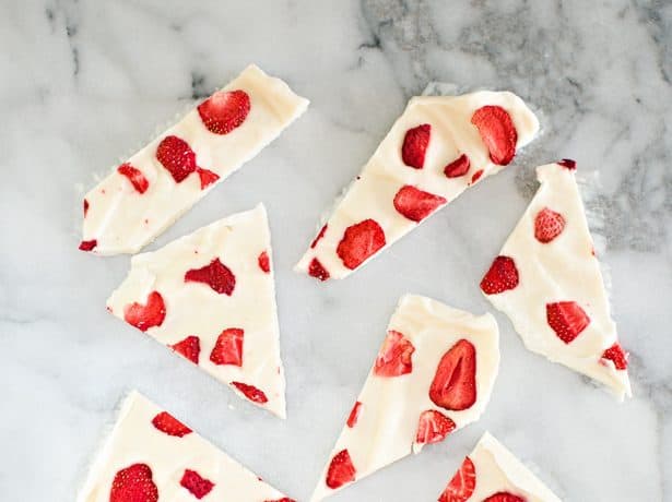 • زبادي يوناني بالعسل • فراولة مجففة أو طازجةطريقة التحضير :