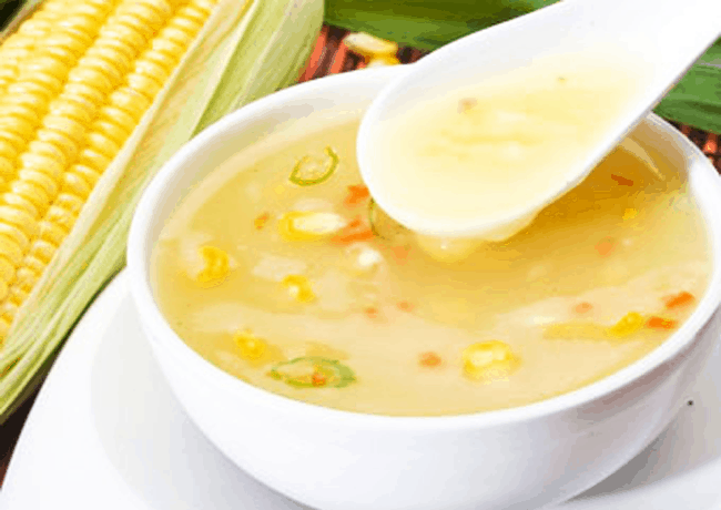 • 10 أعواد ذرة ضغيرة . • 2 ملعقة صغيرة صلصة الصويا . • 2 حبة جزر . • ½ ملعقة صغيرة فلفل ابيض . • 1 ساق كرفس . • 3 ملاعق كبيرة زيت نباتى . • 1 بصلة . • 1 ملعقة كبيرة نشا . • 1 ملعقة صغيرة ملح . • 2 ونصف كوب مرق دجاج او لحم .طريقة التحضير :
