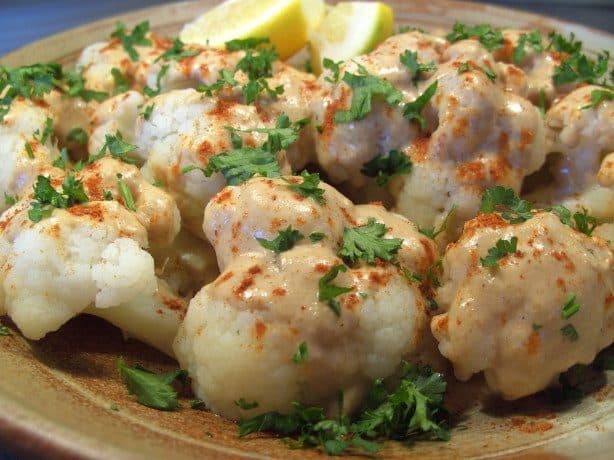 طريقة عمل القرنبيط العربي مع الطحينة بالصور