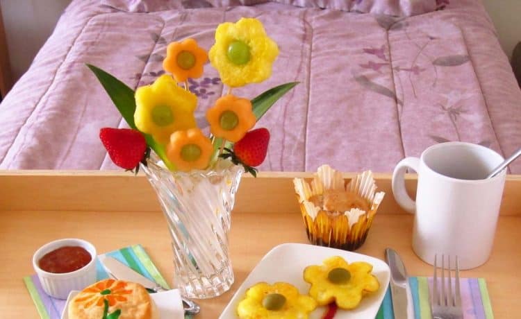 رتبى صينية الفطور بشكل مميز وجميل مع كوب من النسكافية وقدميه لأمك