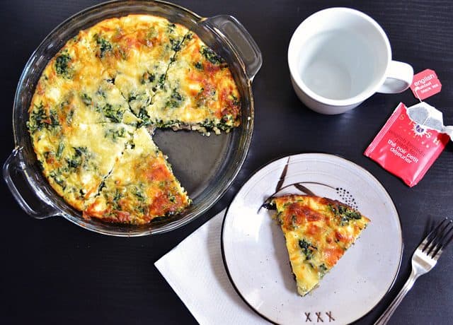 • 450 جرام سبانخ مجمدة ومذابة <br /> • 250 جرام فطر مقطع شرائح<br /> • 1 فص ثوم مهروس<br /> • 1/3 كوب جبن فيتا مفتت<br /> • 4 بيضات <br /> • 1 كوب حليب <br /> • 1/4 كوب جبن بارميزان مبشورة <br /> • 1 معلقة صغيرة ملح وفلفل أسود<br /> • 1/2 كوب جبن موتزريلاطريقة التحضير :