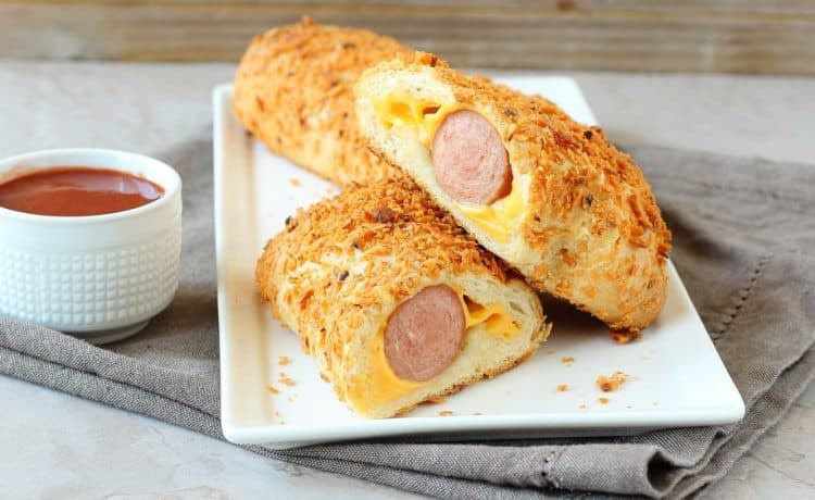 • عجينة الكرواسون<br /> • هوت دوج مسلوق<br /> • شرائح جبن الشيدر<br /> • مسحوق رقائق التورتيلا<br /> • مبشور جبن الشيدر<br /> • ملعقة كبيرة حليبطريقة التحضير :