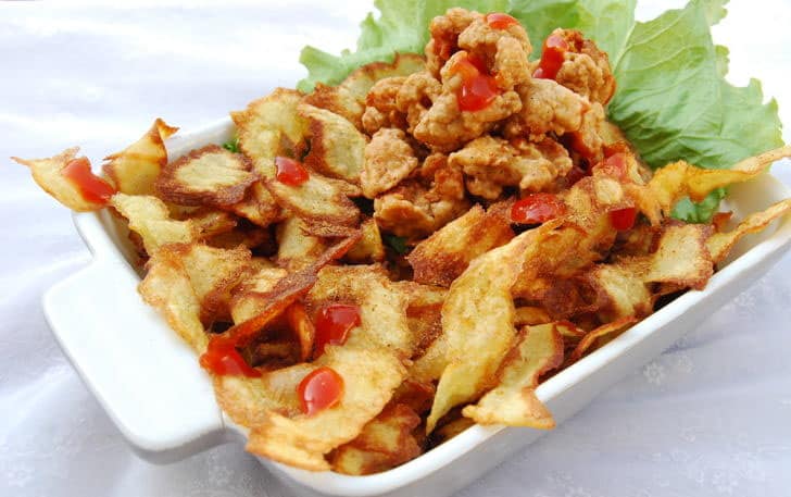 تناولي شرائح البطاطس المقرمشة مع الكاتشب واللحوم