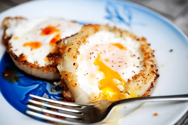 . تناولي حلقات البصل بالبيض مع الخبز.
