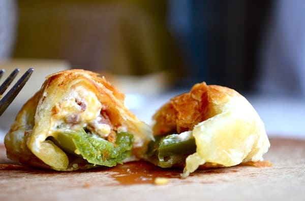 • 12 قرن هالبينو ( فلفل أخضر ) • عجينة البيتزا • 225 جرام جبن كريمي • 2/1 كوب لحم بقري مقدد مفروم • 1 كوب مبشور جبن الشيدر • 4 فصوص ثوم مفروم • 1 بيضة • زيت زيتونطريقة التحضير :