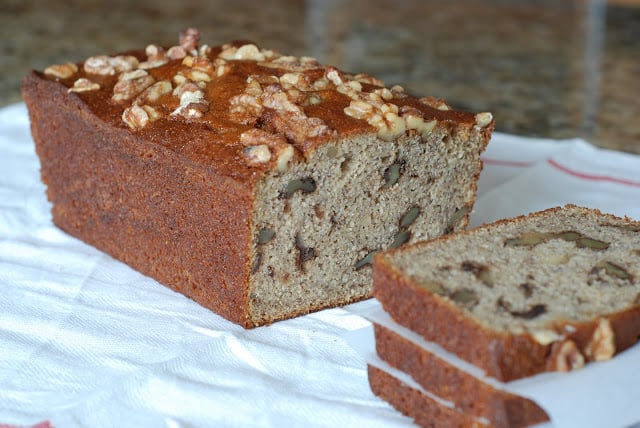 • 3/2 1 + 1/4 كوب من طحين القمح الكامل • 1 معلقة صغيرة صودا الخبز • 3/4 معلقة صغيرة ملح • 1 كوب سكر • 2 بيضة • 1/4 كوب زيت ( يفضل زيت زيتون ) • 1/4 كوب تفاح مهروس • 2/1 3 ثمرة موز ناضجة ومهروسة • 2 معلقة كبيرة لبن زبادى • 1 معلقة صغيرة فانيليا • 1 كوب جوز مفروم خشنطريقة التحضير :