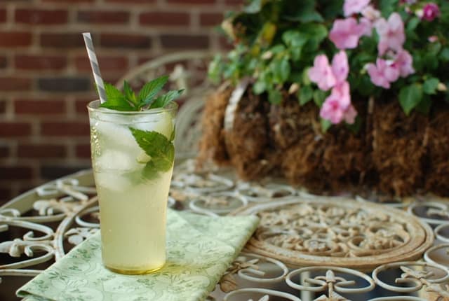 أخيرا أضيفي أوراق النعناع الطازجة ومكعبات الثلج .