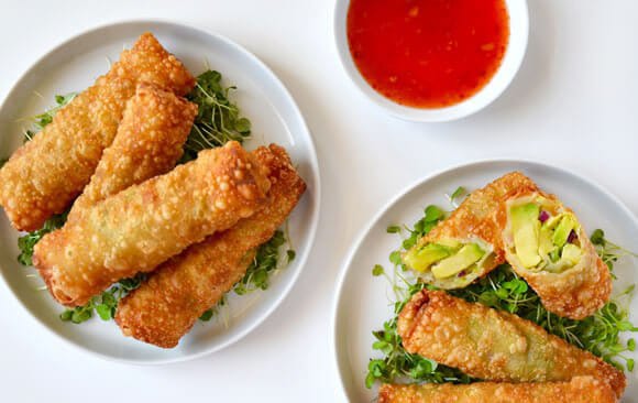 قدمي سبرنج رول الأفوكادو المقلية مع الصوص المفضل لديكِ