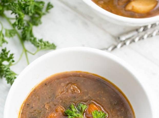قدمي شوربة الخضار باللحم ساخنة على سفرتك.