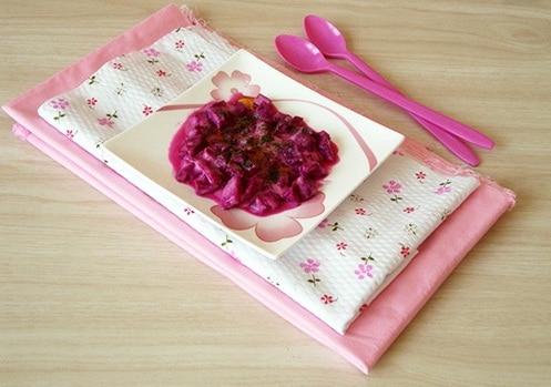قومى بتقطيع مخلل الشمندر ( البنجر أو الشوندر ) الى مكعبات